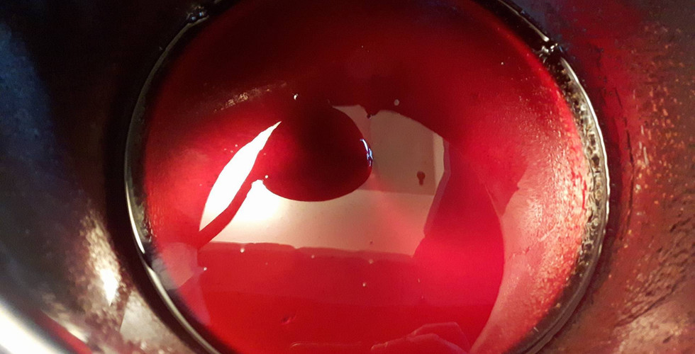Le test de l'assiette : il permet de vérifier la consistance de la gelée. Déposez une petite assiette quelques minutes au congélateur pour qu'elle soit bien froide. Au moment voulu, retirez la casserole du feu pour arrêter la cuisson et déposez environ 5 ml (1 c. à thé) de gelée sur l'assiette. Remettez aussitôt l'assiette au congélateur pour quelques minutes. Si la gelée n'est pas assez consistante, poursuivez la cuisson quelques minutes et répétez le test plus tard.